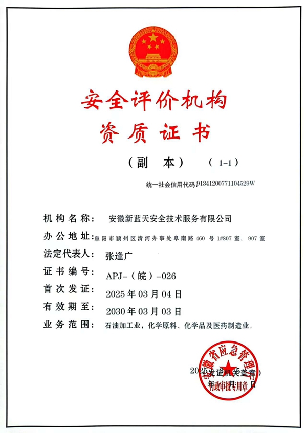 省安监局对安徽新蓝天公司安全评价机构乙级资质延期申报进行审查